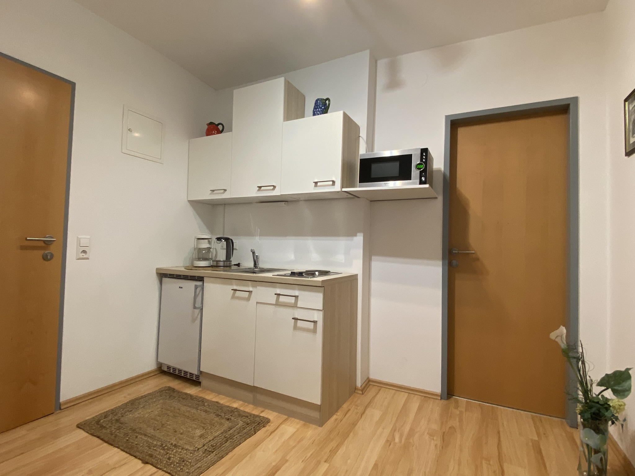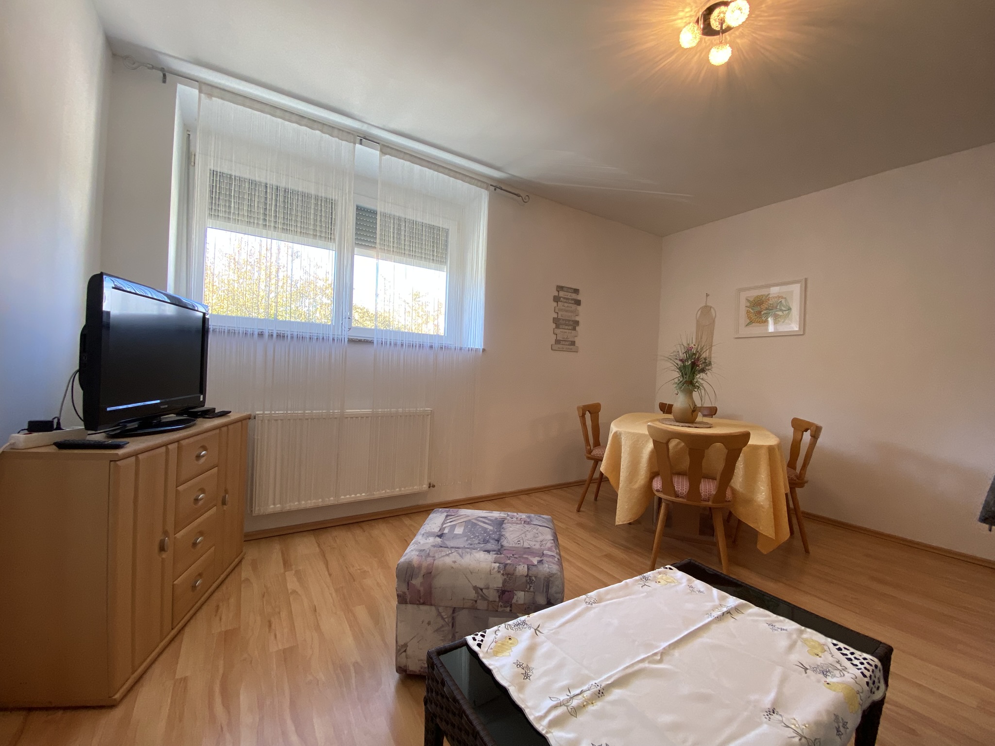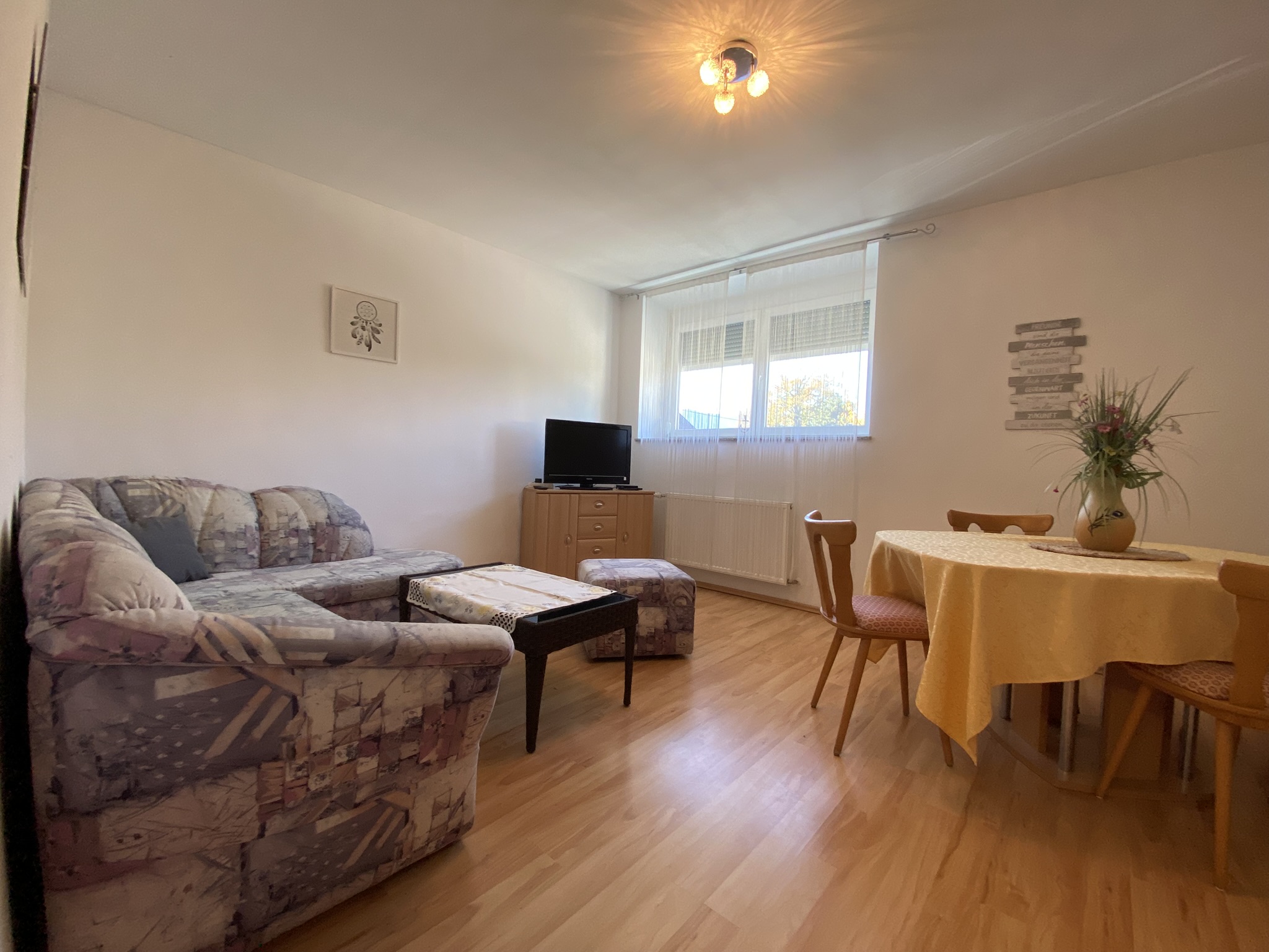 Ein Schlafzimmer mit Doppelbett, begehbarem Kleiderschrank und eventuell einem Gitterbett, einem Wohnschlafraum mit einer Doppel-Ausziehcouch und Satelitten-Fernsehen, einem geräumigen Vorraum mit Kochnische und einem Badezimmer mit Badewanne und WC. Die Kochnische ist ausgestattet mit Mikrowellenherd, Toaster, Kaffeemaschine, Wasserkocher und Geschirr für 4 Personen. Handtücher und Bettwäsche sind selbstverständlich inkludiert. Die Ferienwohnung ist südseitig ausgerichtet. Im Außenbereich steht eine Terrasse zur Verfügung, ideal um die Berglandschaft in Ruhe zu genießen.